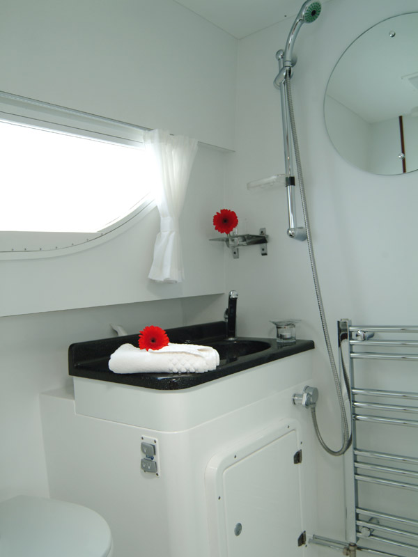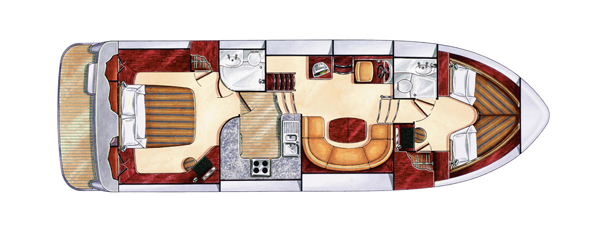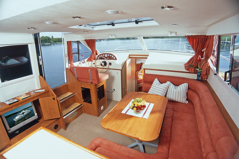 Auf der Europa 400 werden Ihre Ferien zu einem unvergesslichen Erlebnis. Die beiden Kabinen mit Doppelbett bzw. zwei Einzelbetten sind beide mit einem eigenen Bad mit Dusche, elektrischem WC und Fön ausgestattet. Der große Innenbereich, wo sich der große Salon und die eingerichtete Küche befinden, bietet reichlich Blick ins Freie. Hier befindet sich auch ein Satelliten-Fernseher mit CD- und DVD-Player und MP3-Anschluss. Auf dem Teakholz-Deck, wo sich auch der Außensteuerstand befindet, finden Sie einen Essbereich, Waschbecken und einen zweiten Kühlschrank. Für zusätzlichen Komfort sorgen die Badeplattform mit Warmwasser-Dusche, die 220V-Versorgung bei laufendem Motor und das Bugstrahlruder, das ein noch einfacheres Navigieren zulässt.