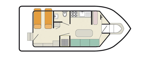 Die Cirrus bietet Platz für bis zu vier Personen. In der Heckkabine befinden sich zwei Einzelbetten. Zusätzlich kann im Salon die Sitzecke in ein Doppelbett umgewandelt werden. Hier befindet sich auch der Steuerstand, ein CD-Spieler und der Zugang zum Hinterdeck mit Sitzgelegenheit. Im Außenbereich befindet sich im Heck Badeplattform sowie ein höher gelegenes Sonnendeck mit einem zweiten Steuerstand.