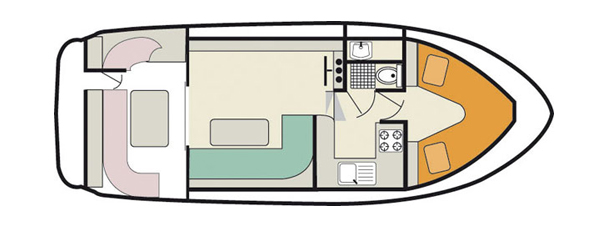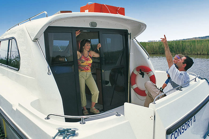 Die Consort bietet Platz für bis zu vier Personen. In der Vorderkabine stehen zwei Einzelbetten bereit. Zusätzlich kann im geräumigen Salon die Sitzecke in ein Doppelbett umgewandelt werden. Hier befindet sich auch der Steuerstand, ein Schiebedach, CD-Spieler und der Zugang zum Hinterdeck mit Sitzgelegenheit und Badeplattform.