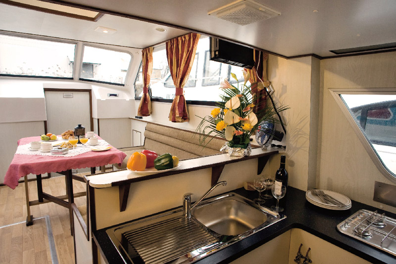 Die Continentale wurde 2009 komplett renoviert und entspricht nun höchsten Standards. Neben der Küche und den Badezimmern wurden auch die Polsterungen und die Böden im gesamten Schiff erneuert. Die drei Kabinen haben jeweils Zugang zum eigenen, angrenzenden Bad mit Dusche und elektrischen WCs. In der Mitte des Bootes befinden sich die Küchenzeile mit Gasherd, Ofen und Kühlschrank sowie der große Salon. Dieser ist mit einem LCD-Bildschirm, DVD-Spieler sowie einer Musikanlage mit CD, Radio, MP3- und USB-Anschluss ausgestattet. Das große Sonnendeck, auf dem sich auch ein zweiter Steuerstand befindet, eignet sich hervorragend für Mahlzeiten unter freiem Himmel.