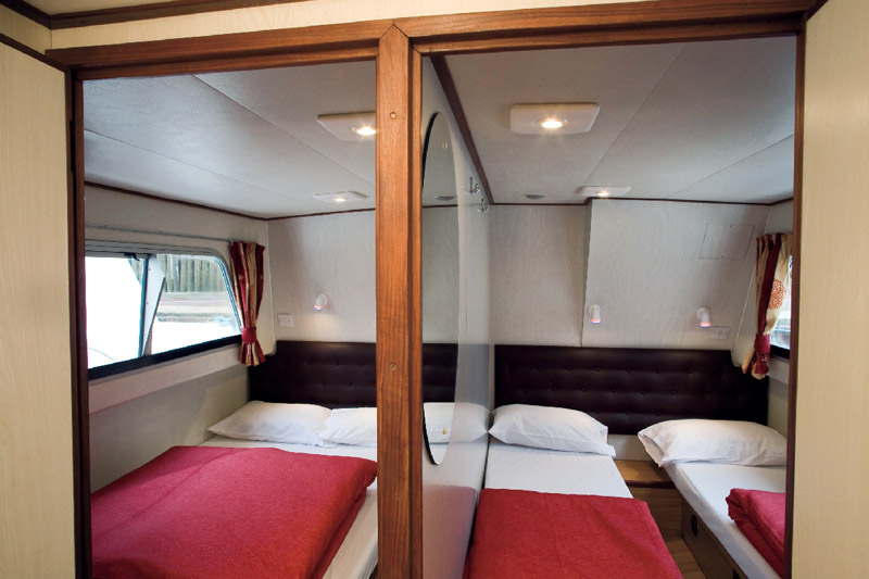 - 2 Kabinen hinten mit jeweils 2 Einzelbetten (Umbaumöglichkeit zu Doppelbett)
