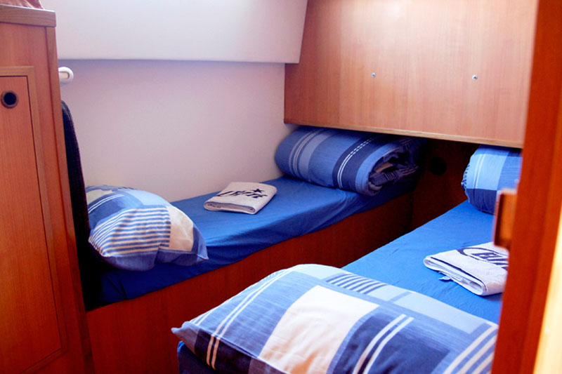 - 2 Kabinen mit jeweils 2 Einzelbetten (Umbaumöglichkeit zu Doppelbett)
