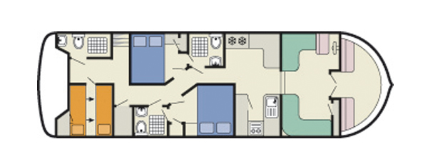 Die Normandie bietet mit insgesamt drei Kabinen und jeweils drei Duschen und WCs optimalen Platz für sechs Personen. Bei Bedarf können weitere vier Personen durch die beiden in Doppelbetten umwandelbaren Sitzecken im Salon bequem Platz finden. Für gute Unterhaltung sorgt der eingebaute CD-Spieler. Vom Salon aus gibt es einen direkten Zugang zum vorderen Deck. Auf der großen Terrasse, auf dem sich ein zweiter Steuerstand befindet, können Sie die Sonne genießen und sich entspannen.