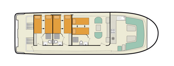 Die Boote der neuen 1500 Serie sind in Design, Form und technischer Ausstattung einzigartig und bieten außergewöhnlich viel Platz und Luxus pur. Die hotelähnlichen Kabinen sind schick und stilvoll eingerichtet und mit zwei Einzelbetten ausgestattet, die zu einem Doppelbett umgewandelt werden können. Zudem gehören zu jeder Kabine ein eigenes Badezimmer, eine individuell regelbare Klimaanlage sowie ein Flachbildschirm mit DVD-Spieler. Die Möbel sind in Holzoptik gehalten und bieten reichlich Stauraum. Im großen und komfortablem Salon finden Sie eine bogenförmige Sitzecke, der auf Wunsch in ein zusätzliches Einzelbett umgewandelt werden kann, die komplett ausgestattete Küche, den Innensteuerstand sowie zur guten Unterhaltung auch hier einen Flachbildschirm und eine Musikanlage. Im Außenbereich gibt es neben der großen Terrasse mit Sonnensegel auch einen zweiten Steuerstand, um bei gutem Wetter auch als Kapitän die Sonne genießen zu können. Weiteren Komfort bietet die neu entwickelte Steuerung per Joystick (zusätzlich zum herkömmlichen Steuerrad), der ein müheloses Manövrieren zulässt sowie das neue POD Antriebssystem und das Bugstrahlruder.