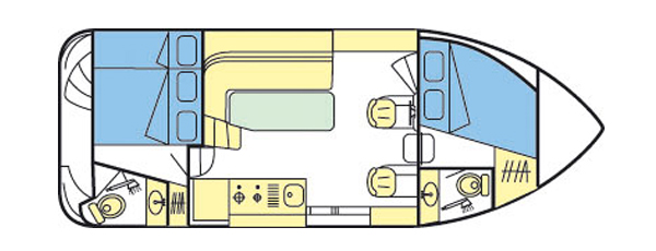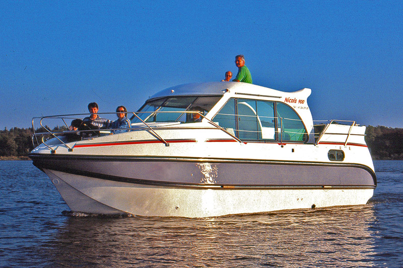 Die Nicols 900 besticht durch ihren hohen Komfort und die geräumige Innenaufteilung. In den beiden Kabinen befindet sich jeweils ein Doppelbett, in der hinteren Kabine zusätzlich noch ein Einzelbett. Bei Bedarf können durch Umwandlung der Sitzbank im Salon zwei weitere Schlafplätze geschaffen werden. Alle Kabinen sind mit einem angrenzenden Badezimmer mit Dusche und WC ausgestattet. Im großen Salon mit Panoramablick finden Sie den Innensteuerstand und den Essbereich. Sicher und leicht erreicht man die im Rumpf vorgeformte vordere und die hintere Terasse mit Außensteuerstand, wo man bestens entspannen und die Sonne genießen kann.