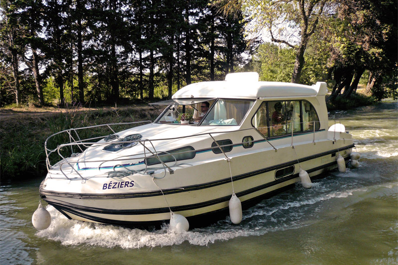 Die Nicols 1000 bietet hohen Komfort und wartet mit einem großen Aufenthaltsraum mit Panoramablick und einer breiten Schiebetür, die zu einer schönen Terrasse führt und auf. Sie verfügt über eine Kabine mit Doppelbett und zwei weiteren Kabine mit je einer Doppelbettkoje ohne Stehhöhe. An Bord befinden sich zudem zwei Duschen und zwei WCs. Im Salon finden Sie eine gut ausgestattete Küchen, den Essbereich, der bei Bedarf zu einem weiteren Doppelbett umgewandelt werden kann und den Innensteuerstand. Über die Terrasse gelangen Sie zum höher gelegenen zweiten Steuerstand, so dass Sie das Boot auch unter freiem Himmel steuern können.