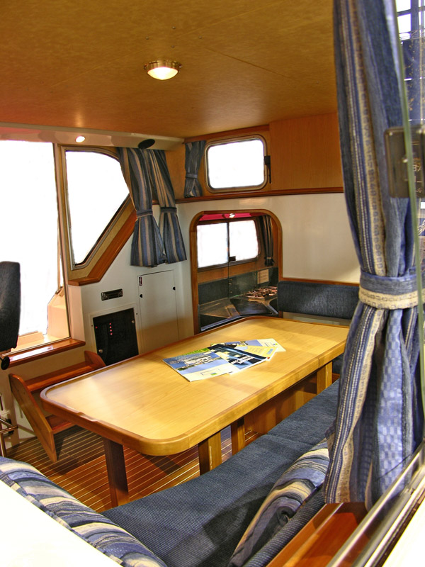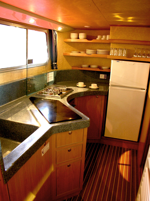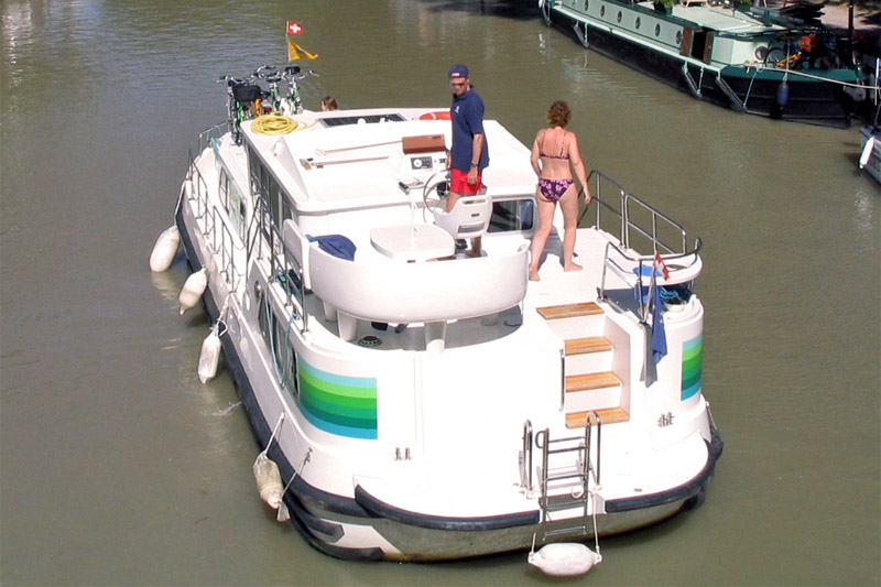 Die Pénichette 1180 FB lässt mit ihrer guten Ausstattung keine Wünsche offen. Sie verfügt über zwei Kabinen im Bug mit je zwei Einzelbetten, die zu einem Doppelbett umgewandelt werden können (auf Wunsch kann in einer Kabine zusätzlich ein einhängbares Einzelbett in halber Höhe befestigt werden) und eine Kabine mit Doppelbett im Heck. Die drei Badezimmer der Pénichette sind mit Duschen und elektrischen Toiletten ausgestattet. In der Bootsmitte befinden sich die Küche, der Salon und der Innensteuerstand, für gute Unterhaltung sorgen ein Radio und CD-Spieler. Im Außenbereich finden Sie das große Sonnendeck sowie die geräumige Flying-Bridge mit zusätzlichem Steuerstand im Freien. Zusätzlichen Komfort bieten die Warmwasserzentralheizung, Solarzellen, die die Stromversorgung unterstützen und die 220V-Versorgung bei laufendem Motor.