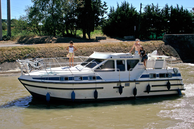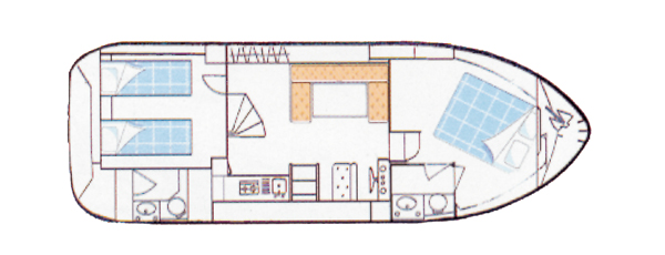 Die Tarpon 37 Duo Prestige punktet vor allem mit dem hohen Komfort und ihrer besonders geräumigen Aufteilung. Die beiden Kabinen verfügen über Doppelbetten bzw. zwei Einzelbetten, die zu einem Doppelbett umgebaut werden können sowie ein daran angeschlossenes, eigenes Badezimmer mit Dusche und elektrischer Toilette. In der Mitte des Schiffes befindet sich neben der gut ausgestatteten Küche der Salon mit Innensteuerstand und Essbereich, der bei Bedarf in ein zusätzliches Doppelbett umgewandelt werden kann. Die Sonne können Sie auf dem großen Sonnendeck oder beim Lenken des Schiffes vom Außensteuerstand aus genießen. Zusätzlichen Komfort an Bord bietet die Klimaanlage (außer in Deutschland) sowie der Landstromanschluss und das Bugstrahlruder, das ein noch einfacheres Navigieren zulässt. Für gute Unterhaltung sorgt zudem ein Radio mit CD-Spieler.