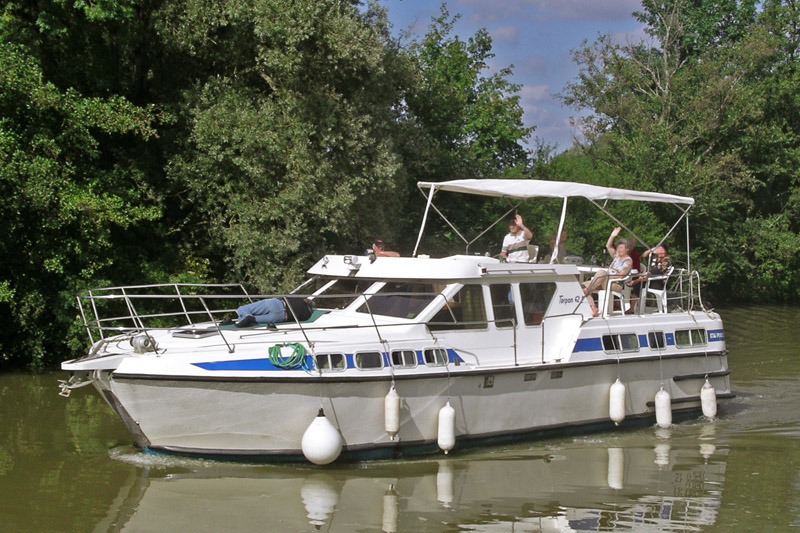 Die Tarpon 42 N ist optimal für große Gruppen geeignet und verfügt über insgesamt vier Kabinen und zwei Badezimmer mit Dusche und WC. Die vordere Kabine verfügt ein Doppelbett und ein Einzelbett in halber Höhe, die hinteren Kabinen über Doppelbetten bzw. über Stockbetten mit zusätzlichem Einzelbett. In der Mitte des Bootes liegt neben der separaten, gut ausgestatteten Küche der großzügige Salon mit Innensteuerstand und Sitzecke, die bei Bedarf in ein zusätzliches Doppelbett umgewandelt werden kann. Im Außenbereich befindet sich neben der Terrasse mit zweitem Steuerstand auch ein großes Sonnendeck, von wo aus Sie den tollen Blick auf die Flusslandschaft genießen können. Für ein noch einfacheres Navigieren des Bootes finden Sie selbstverständlich ein Bugstrahlruder an Bord. Im Vergleich zur Tarpon A ist dieses Boot die neuere Version.