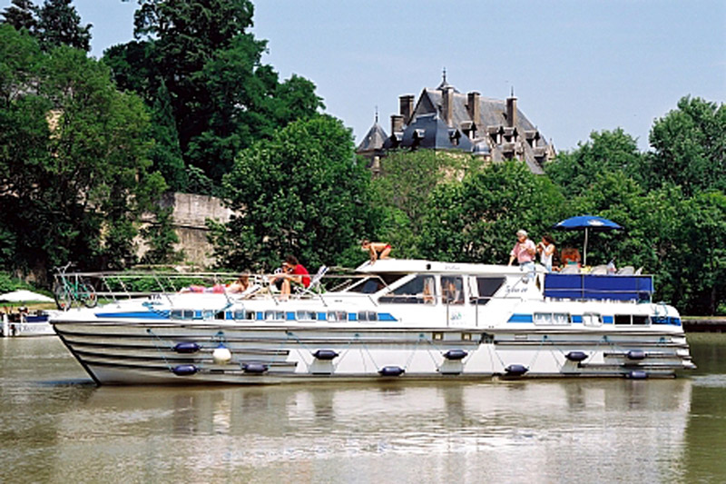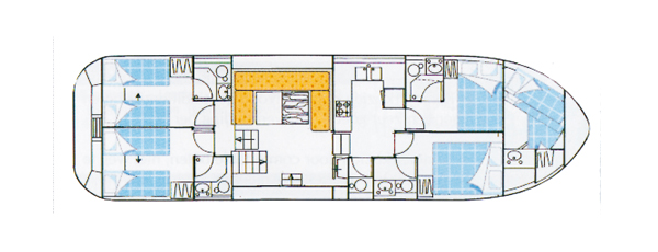 Die Tarpon 49 Quattro Prestige ist das ideale Boot für große Gruppen, die auf keinen Komfort verzichten möchten. An Bord befinden sich neben vier Duschen und fünf elektrischen Toiletten insgesamt fünf Kabinen. Die beiden vorderen Kabinen sind mit je einem Doppelbett ausgestattet, die beiden hinteren über zwei Einzelbetten, die zu Doppelbetten umgebaut werden können. Eine weitere Kabine mit eigenem Einstieg im vorderen Bereich verfügt über zwei übereinander liegende Einzelbetten. In der Mitte des Schiffes liegt neben der separaten, gut ausgestatteten Küche der großzügige Salon mit Innensteuerstand und Sitzecke, die bei Bedarf in ein zusätzliches Doppelbett umgewandelt werden kann. Zusätzlichen Komfort an Bord bietet die Klimaanlage sowie einen Landstromanschluss und das Bugstrahlruder, das ein noch einfacheres Navigieren zulässt. Für gute Unterhaltung sorgt zudem ein Radio mit CD-Spieler. Im Außenbereich befindet sich neben der Terrasse mit zweitem Steuerstand auch ein großes Sonnendeck, von wo aus Sie den tollen Blick auf die Flusslandschaft genießen können.