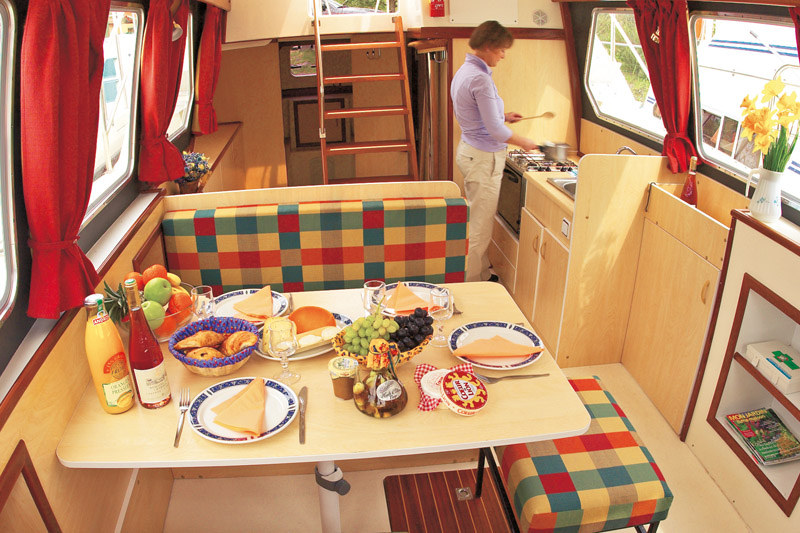 Die Vetus 900 bietet Platz für bis zu fünf Personen. In der großen Heckkabine befindebefindet sich neben einem Doppelbett auch ein Einzelbett. Zusätzlich kann im Salon die Sitzecke in ein Doppelbett umgewandelt werden. Hier befindet sich auch der Steuerstand und ein CD-Spieler. Im Außenbereich befindet sich ein höher gelegenes Sonnendeck mit einem zweiten Steuerstand. Für höheren Komfort sorgt zudem ein Landstromanschluss an Bord.