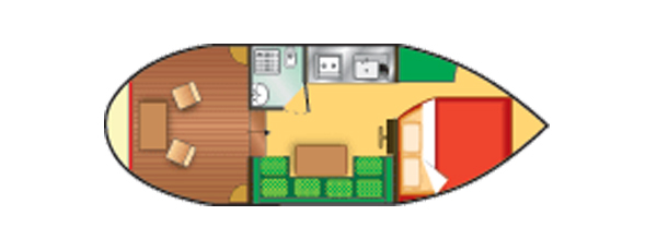 Die Alcova ist ein preisgünstiges Boot mit zweckmäßiger Ausstattung. Es verfügt über eine Schlafkabine mit Doppelbett, ein Badezimmer mit Dusche und WC sowie über einen Salon mit Küche und Essecke, die bei Bedarf in ein Einzelbett umgewandelt werden.