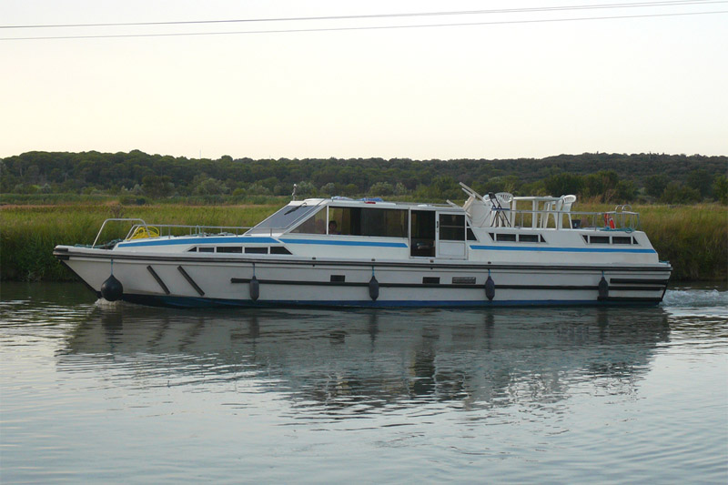 Die Eagle bietet auf einer Länge von knapp 14 m Platz für bis zu 12 Personen und verfügt über vier Schlafkabinen. Die beiden hinteren Kabinen sind jeweils mit einem Doppelbett ausgestattet, die vordere mit zwei Einzelbetten und die seitliche mit zwei übereinander liegenden Einzelbetten. Vier weitere Schlafplätze können im Wohnbereich durch Umwandlung der beiden Sitzecken in Doppelbetten geschaffen werden. An Bord befinden sich insgesamt drei Badezimmer mit Duschen und Toiletten. Der Wohnbereich beinhaltet neben den Sitzecken noch die Küche und den Führerstand. Von hier aus gelangen Sie auch auf die geräumige Terrasse mit zweitem Steuerstand, so dass Sie jederzeit die Sonne genießen können.