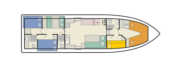 - Kabine vorn/seitlich mit 2 übereinander liegenden Einzelbetten