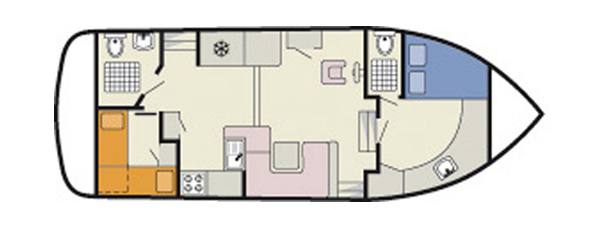 Die Lough Ree 1135 D verfügt über zwei Kabinen und zwei Badezimmer mit Dusche und WC. Die vordere Kabine ist mit einem Doppelbett ausgestattet, die hintere mit einem Stockbett. Der Salon in der Mitte des Schiffes hat ein großes Schiebedach und ist mit einer Sitzecke, die bei Bedarf in ein weiteres Doppelbett umgewandelt werden kann und mit einem CD-Spieler ausgestattet.