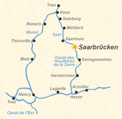 Entlang des Saar-Kohle-Kanals können Sie die schöne Landschaft genießen. Legen Sie in Sarreguemines an und besichtigen Sie die alte Steingutmanufaktur. Auf Ihrer weiteren Fahrt überqueren sie anschließend die 45 Meter lange Kanalbrücke bei Sarrealbe und fahren weiter in Richtung Rhein-Marne-Kanal.