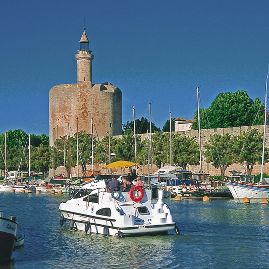 Über die Petite Rhône gelangt man von St. Gilles zum Mittelmeer durch ein einzigartig schönes Naturreservoir, das nur per Boot erreicht werden kann. Der Canal du Rhône à Sète führt von der Rhône ab Beaucaire bis nach Sète am Étang de Thau. Sehenswert auf der Fahrt über den Canal du Rhône à Sète ist vor allem Aigues-Mortes, ein von Ludwig IX. im Jahre 1241 errichteter Hafen für die Kreuzzugsfahrer. Von der alten Stadtbefestigung ist der große rechteckige Mauerkranz mit seinen 20 Türmen und 10 Toren vollständig erhalten. Der Kanal führt hier unmittelbar vorbei, und diese Stelle wird als der „schönste Anlegeplatz zwischen Toulouse und Arles“ bezeichnet - im Schatten des mächtigen Nordturms der Anlage, des Turms der „Constance“.