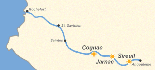 Flussabwärts gelangen Sie bis an die Küste nach Rochefort. Auf dem Weg dorthin fahren Sie unter anderem an Saintes vorbei, dessen römischer Ursprung auch heute noch durch die Reste eines Amphitheaters erkennbar ist. Rochefort selbst spielte als Hafenstadt im 17. Jahrhundert eine wichtige Rolle in der Seefahrt. Der frühere Kriegshafen hat sich mittlerweile in einen wunderschönen Yachthafen verwandelt. Das berühmteste Bauwerk der Stadt ist die an der Charente gelegene königliche Seilerei, ein 370 m langes Gebäude, in dem sich heute ein Marine-Museum befindet.