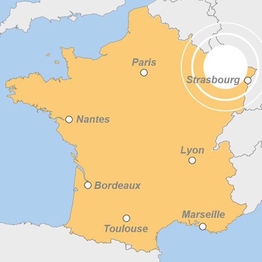 Nach Passieren der Ruine Lutzelbourg und eines ausgedehnten Waldgebietes erreicht man Saverne, eine typische elsässische Kleinstadt am Fuße der Vogesen mit einem berühmten Schloss. Straßburg, Sitz des Europaparlaments, des Europarats und des Europäischen Gerichtshofs für Menschenrechte, hat heute politische Weltbedeutung. Doch auch aus kulturellen Gründen sollte man sich hier einen Tag Zeit gönnen. Besichtigen sie das berühmte Straßburger Münster und schlendern Sie durch das so genannte Gerberviertel im Stadtteil La Petite France am Ufer der Ill und mehrerer Kanäle mit seinen malerischen Fachwerkhäusern, kleinen Gassen und den typischen Dachgauben.