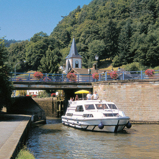 Der Canal de la Marne au Rhin verbindet ab Vitry le François in der Champagne Paris mit dem Rhein. Auf dem Weg von Lothringen ins Elsass passiert man so bedeutende Städte wie Toul und Nancy. Diese Stadt an der Mosel ist das Handels- und Kulturzentrum Lothringens, die einstige Residenz der Lothringer Herzöge. Nancy besticht vor allem durch großzügige Anlagen und herrliche Plätze, die nach französischer Art ganz auf perspektivische Wirkung angelegt sind. Als Kulturstadt mit weitem Wirkungskreis ist Nancy aus architektonischer Sicht besonders wegen vieler Jugendstilbauten bekannt. Auf dem Weg gen Osten durchfährt man ab Lagarde den Nationalpark Lorraine, der den Hausbooturlauber auch durch die Seen von Réchicourt und Gondrexange führt, an welchen auch vielfältige Wassersportmöglichkeiten angeboten werden. Von Gondrexange zweigt der Canal des Houillères de la Sarre, der alte Kohlen-Saar-Kanal, in nördliche Richtung ab zu den Orten Sarralbe und Sarreguemines (Saargemünd) bis zur deutsch-französischen Grenze und über diese hinaus bis nach Saarbrücken. Folgt man der ursprünglichen Richtung weiter, gelangt man bald zu einem Höhepunkt der Kanalschiffahrt: dem Schrägaufzug von Arzviller, der in Europa einzigartig ist. Er überwindet einen Höhenunterschied von 44,55 m und ersetzt dabei 17 Schleusen.